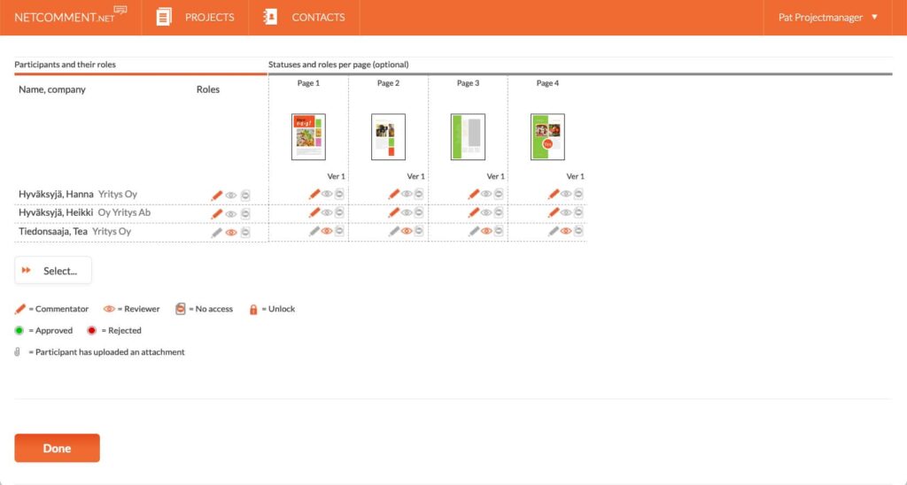 – project commented and rejected (at least one commenter has rejected at least one page)