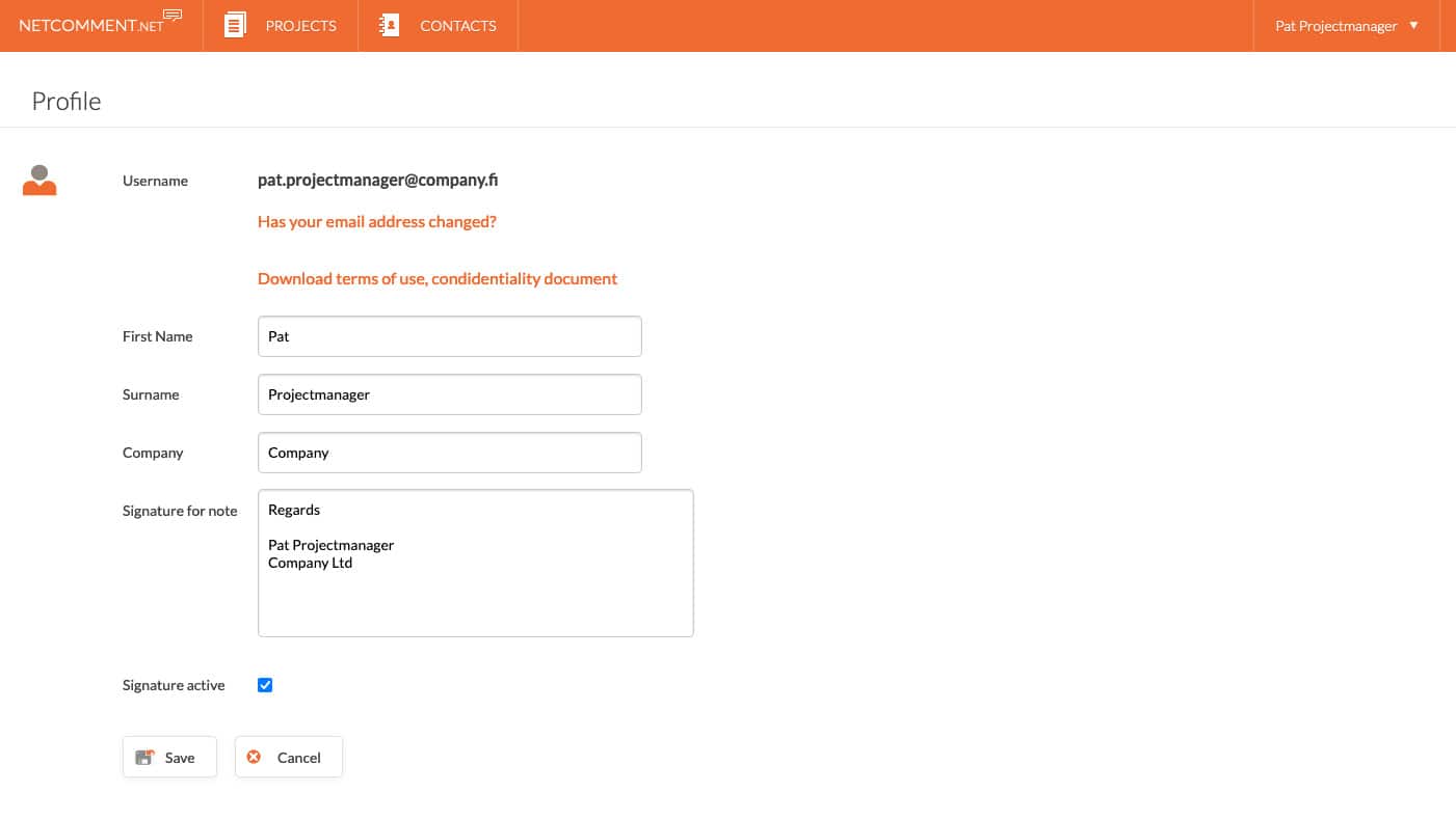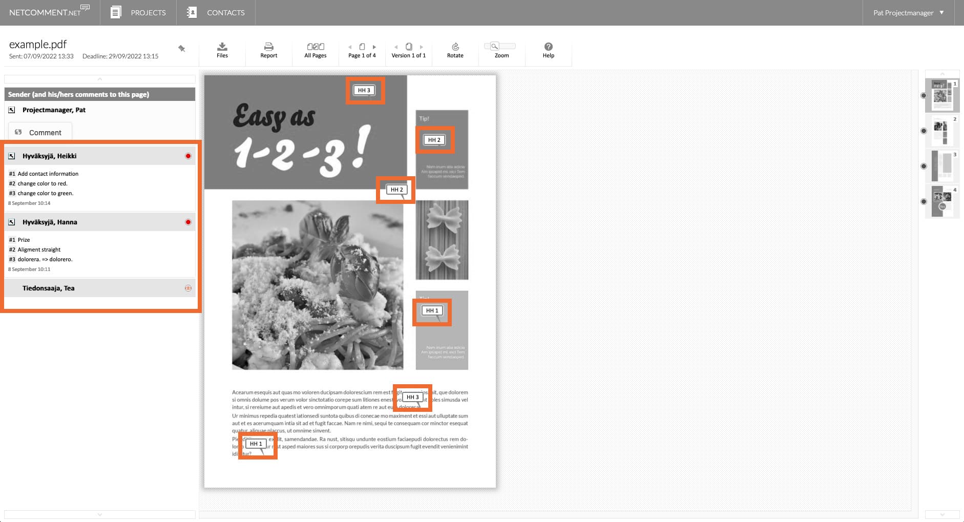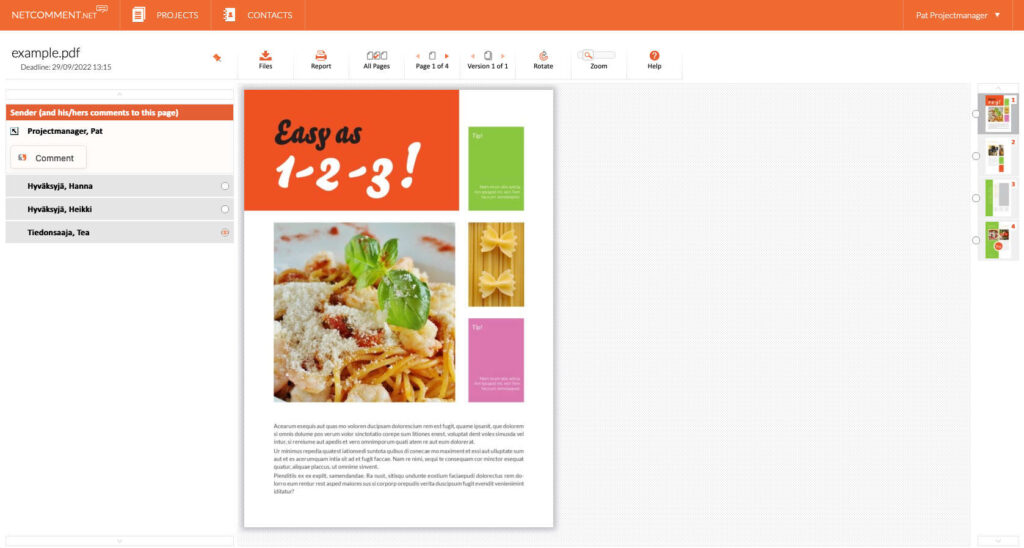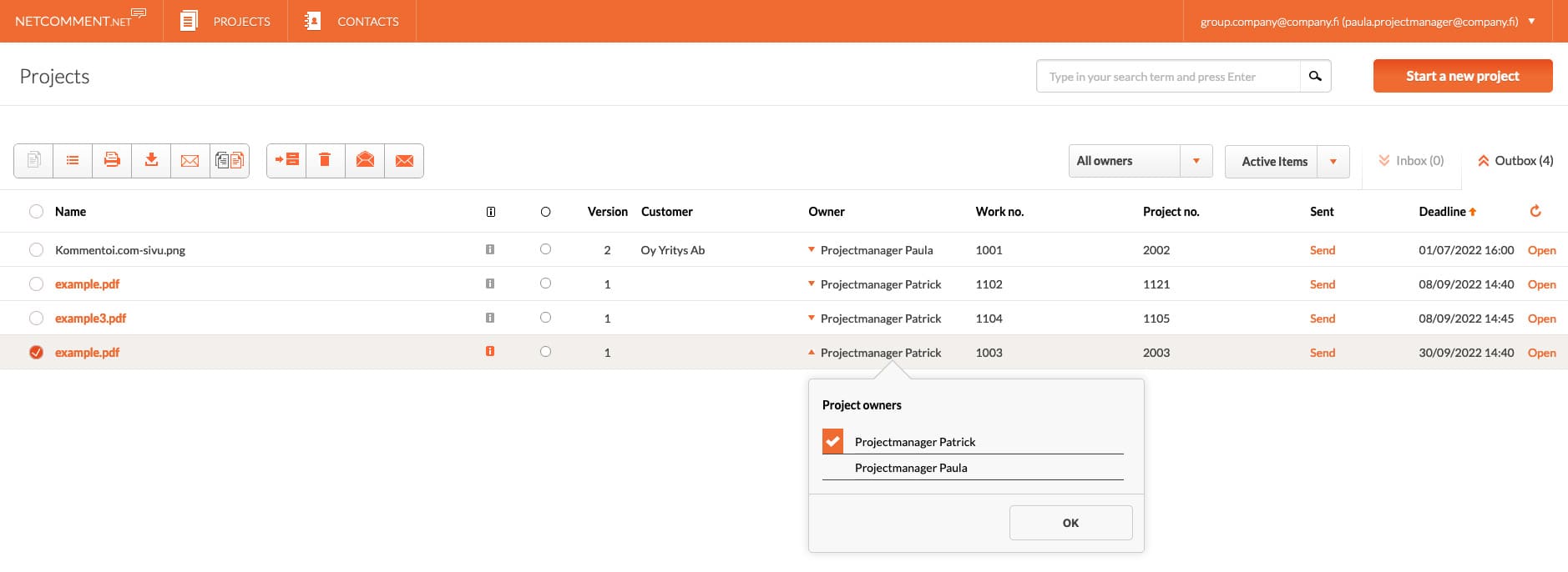 If you work with a shared group account, set yourself as the project owner. This way you get any messages about the progress of the commenting process – these will be sent to the email set up in your personal ”My Page” area.