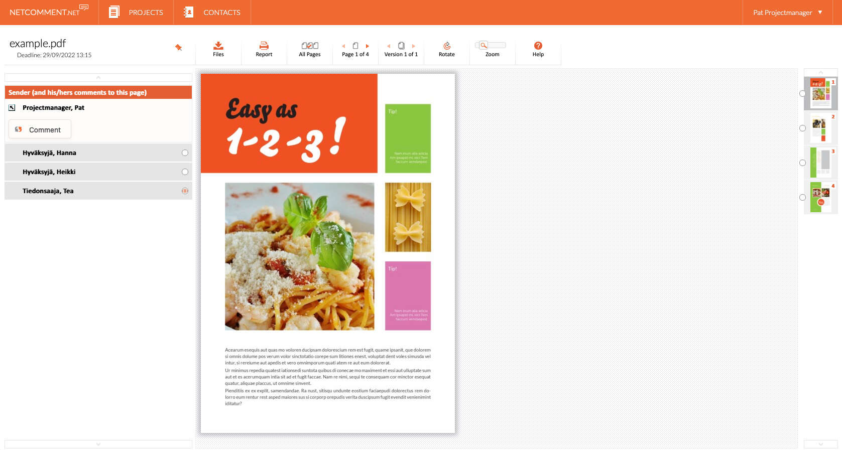 Netcomment.net is a browser-based service that streamlines the entire document commenting workflow. Using Netcomment.net you can quickly set up projects, define schedules, and manage the people and users involved in the project and their project rights / responsibilities.