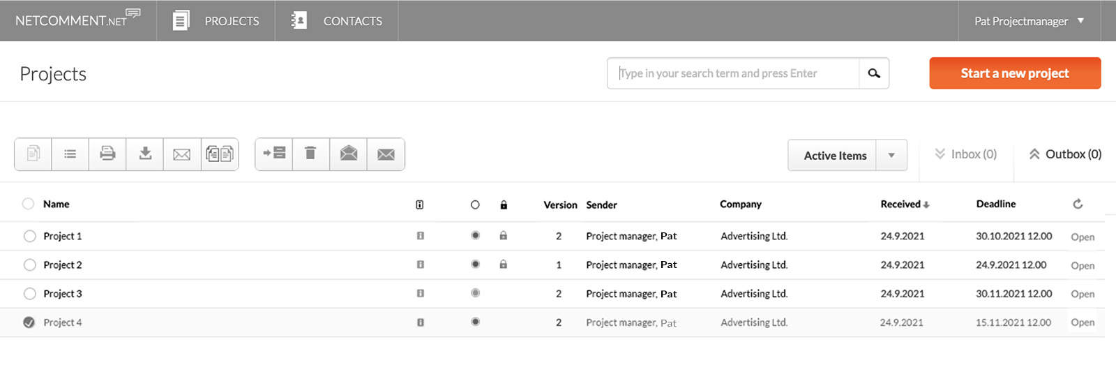 Highlight or remove the highlight from the project bar and stay up-to-date on which projects require your attention. When new comments arrive, the project line is automatically highlighted.