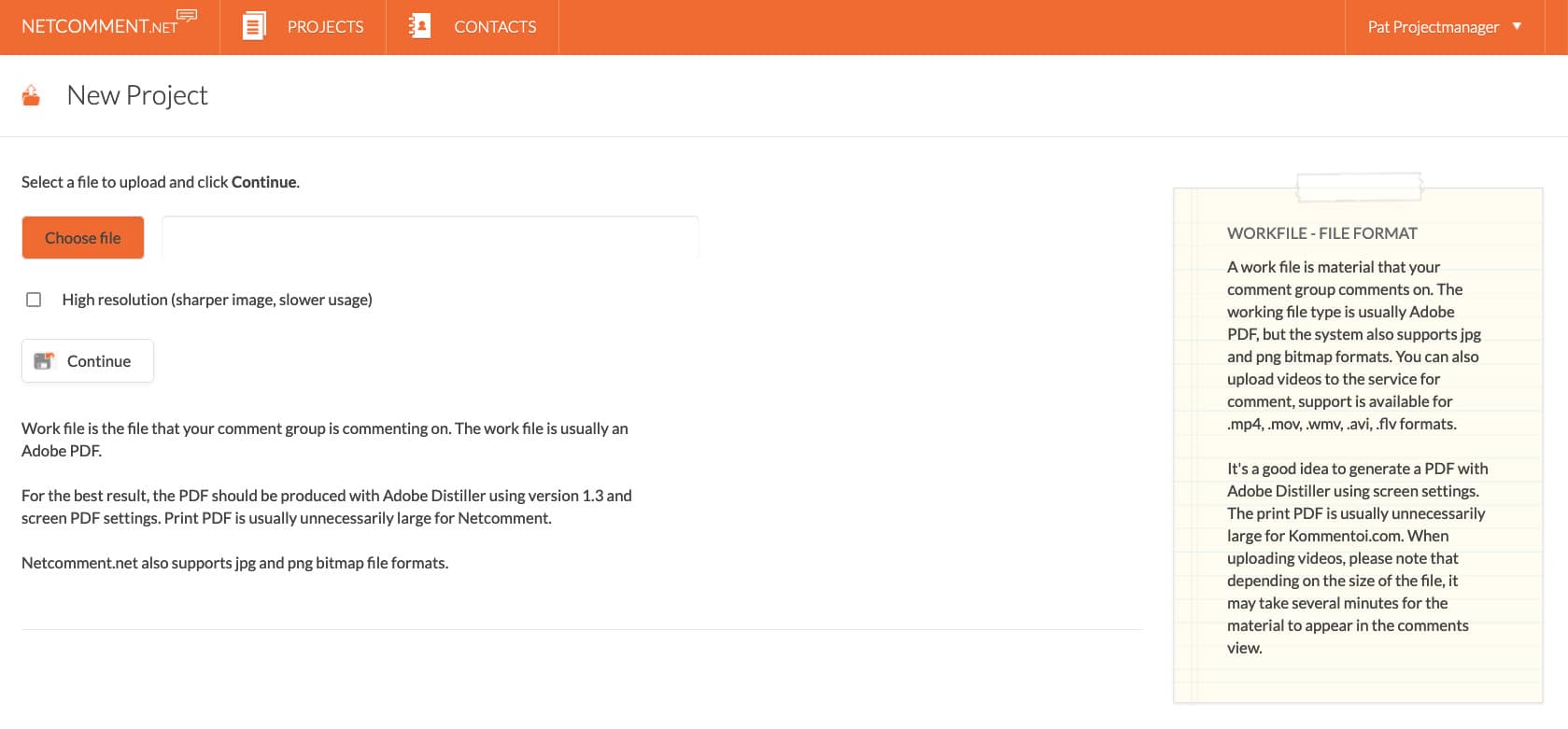 It’s a good idea to generate a PDF with Adobe Distiller using screen settings. The print PDF is usually unnecessarily large for commenting purposes. When uploading videos, please note that depending on the size of the file, it may take several minutes for the material to appear in the comments view.